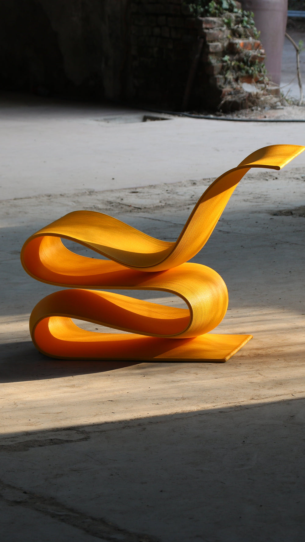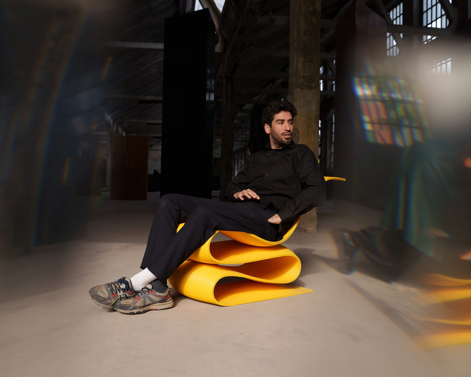The Bounce Chair offers a playful sensory experience, evoking the feeling of sitting atop a giant spring. Its dynamic form invites interaction, revealing comfort through engagement rather than appearance. Philippe’s design blends joyful, futuristic aesthetics with advanced 3D printing, embodying his belief in technology’s power to create emotional, expressive furniture for a decentralized, sustainable future.